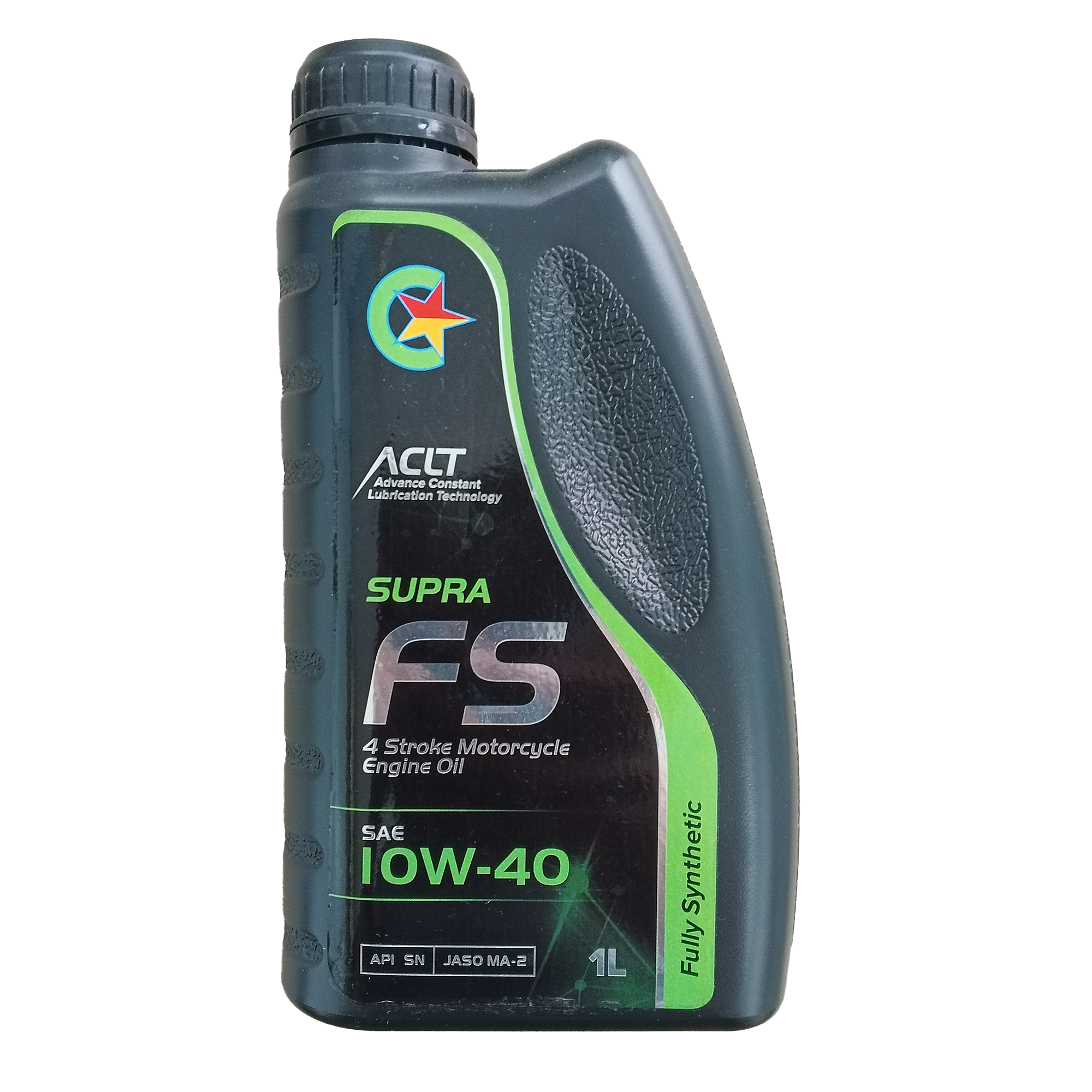 Supra FS is a premium Fully Synthetic SAE 10W-40 multi-grade motor oil developed using Centrum Lubricant's advance lubrication engineering. Formulated for the highest degree of protection, increased performance and potential fuel economy for modern 4-stroke motorcycles and sports bikes.