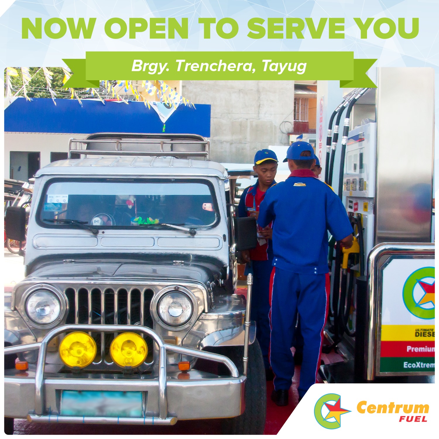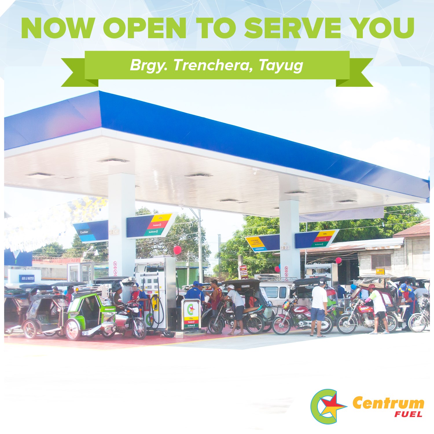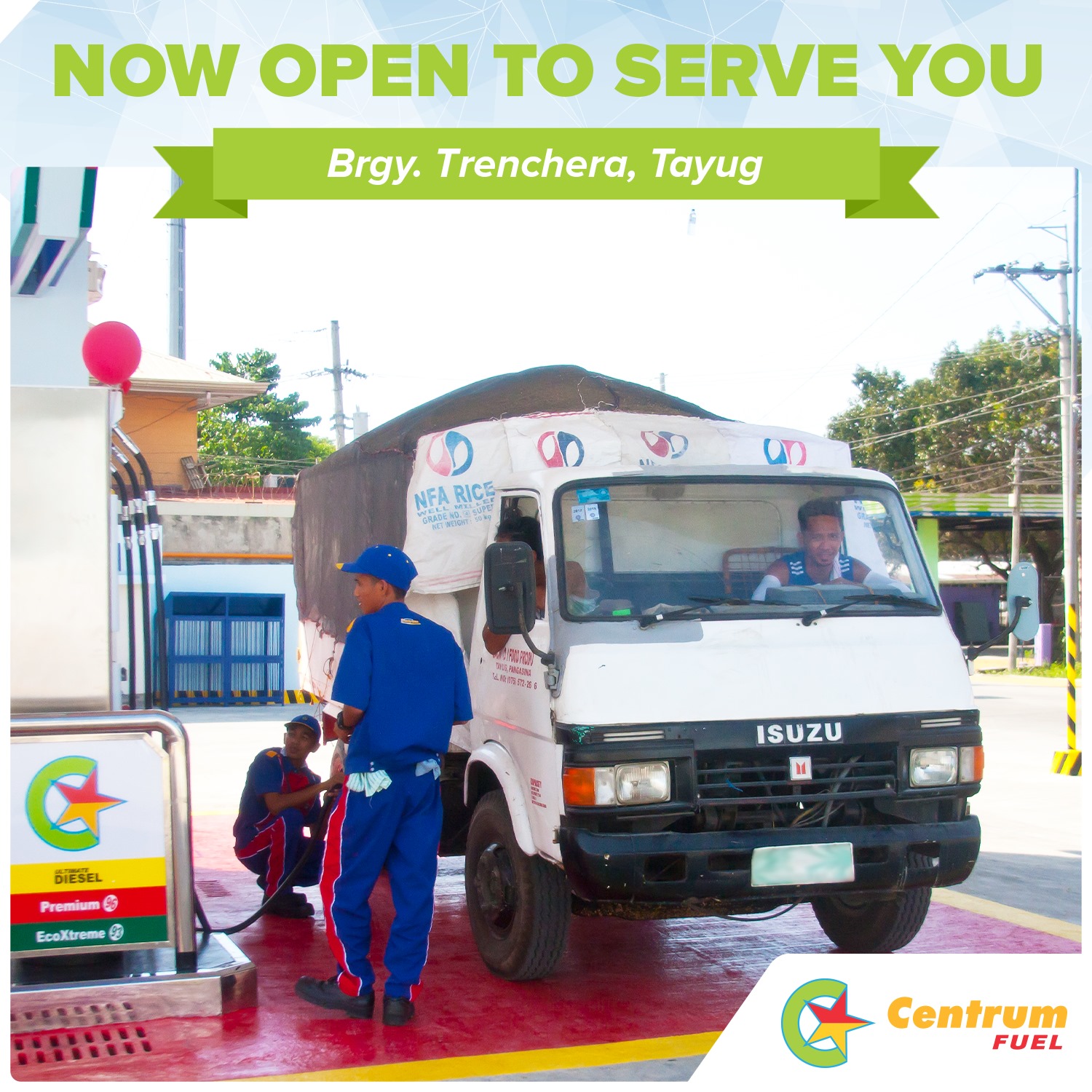 A new Centrum Fuel Station is all geared up to serve you in Brgy. Trenchera, Tayug, Pangasinan. Our new station was launched last Oct. 12, 2019. Serving you with our line of outstanding fuel products and services. Be part of our growing team and Ignite Your Success!