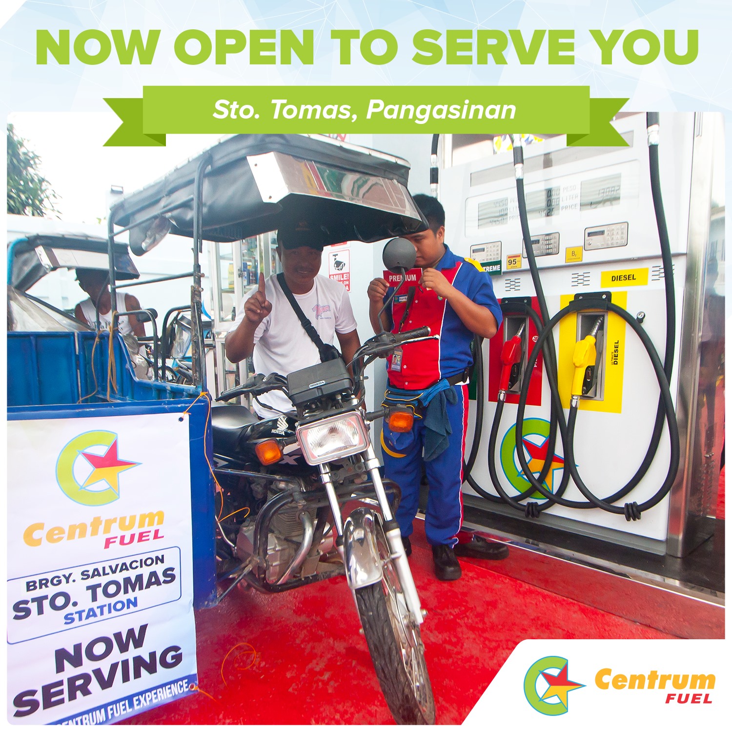 A new Centrum Fuel Station is all geared up to serve you in Sto. Tomas, Pangasinan. Proud to be celebrating the opening of our 81st Fuel Station this August 2019. Experience the quality of the Fuel of Champions, our facilities and the customer service that comes with it.
